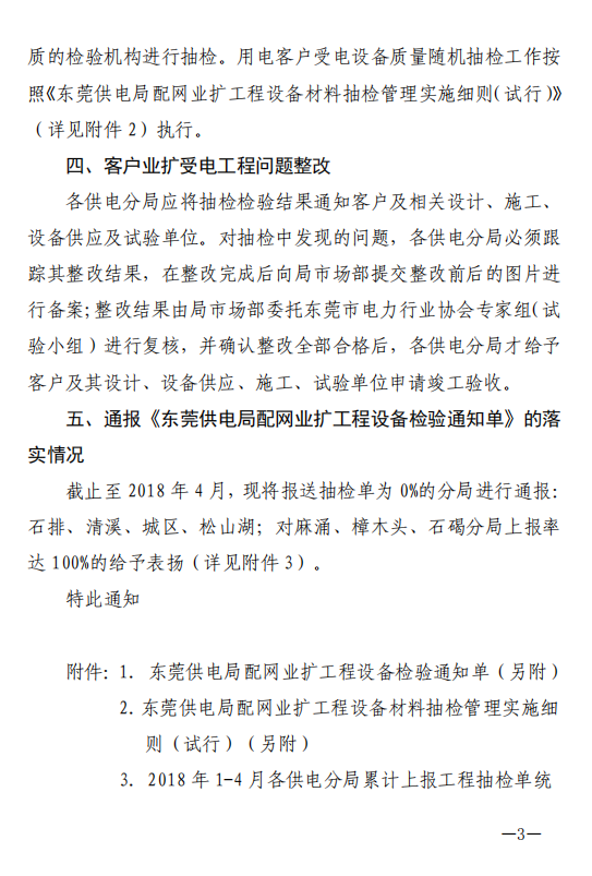 東莞電行〔2018〕23號(hào)--轉(zhuǎn)發(fā)東莞供電局《關(guān)于加強(qiáng)配網(wǎng)業(yè)擴(kuò)工程設(shè)備材料抽檢管理的通知》