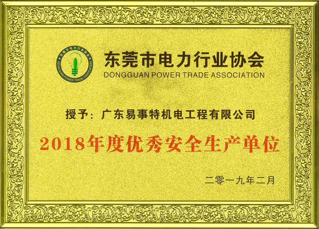 廣東易事特機(jī)電工程有限公司在此次評選活動中榮獲“2018年度優(yōu)秀會員單位”、“2018年度優(yōu)秀安全生產(chǎn)單位”和“2018年度優(yōu)秀品牌建設(shè)單位”稱號。